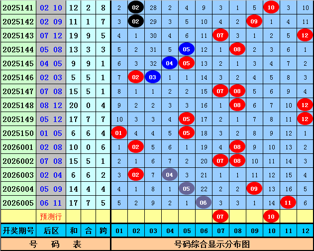 后区奖号分析:上期后区奖号为06+11,遗漏期数为22期和16期,目前后区号码01-12分别遗漏:5期、2期、9期、2期、1期、0期、3期、3期、1期、14期、0期、6期,本期后区注意号码02、04、05、07、10,两码关注07、10。