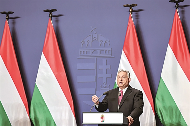 1月5日,匈牙利总理欧尔班在首都布达佩斯出席年度国际新闻发布会。新华社发