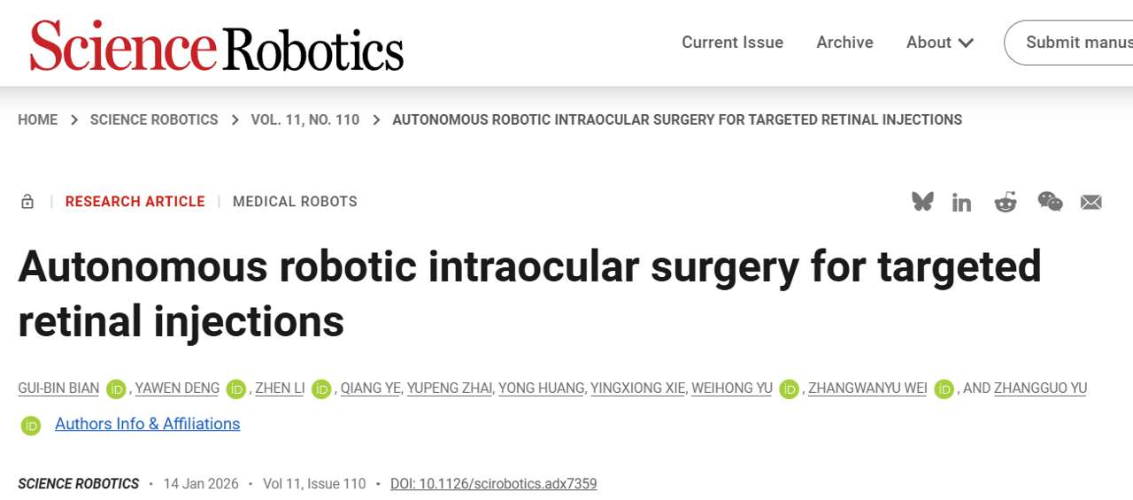 该研究成果为眼内手术的自主化开辟了全新的技术路径,不仅验证了自主机器人在显微手术中应用的可行性,更有望推动眼科手术治疗的智能化、精准化升级,尤其在远程医疗和极端环境等复杂场景中展现出广阔的应用潜力。