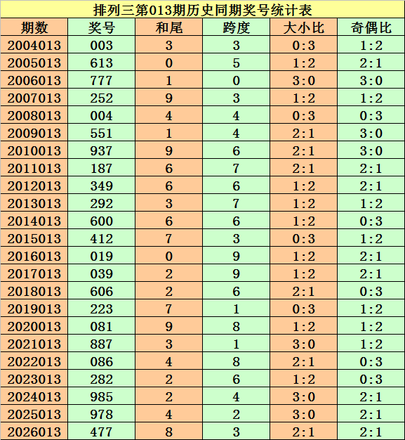 上期回顾:排列三第2026013期奖号开出477。