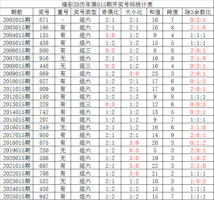 其中,组三号码开出3次,组六号码出现21次,上期奖号为组六号码,本期预计继续开出组六号码。
