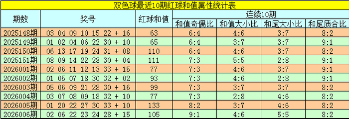 福彩双色球第2026007期红球和值综合分析: